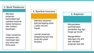 Ia membiayai secara eksklusif dengan dana yang. A short summary of this paper. Koperasi Menyediakan perkhidmatan pembelian brg dgn harga yg murah Mengerakkan tabungan drp ahli dan memberi pinjaman kpd ahli 4.