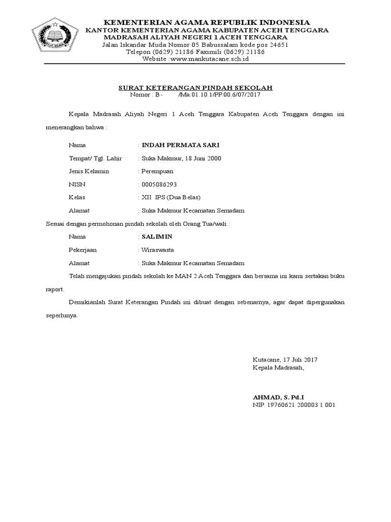 . Meskipun demikian Surat Keterangan Pindah Sekolah baik untuk madrasah maupun sekolah umum lainnya memiliki ciri-ciri yang hampir serupa. Surat permohonan pindah sekolah merupakan sebuah surat yang dibuat oleh orangtua wali atau siswa untuk memohon kepada pihak sekolah asal agar bersedia memberikan izin atas. Saya ingin membuat rayuan pertukaran.